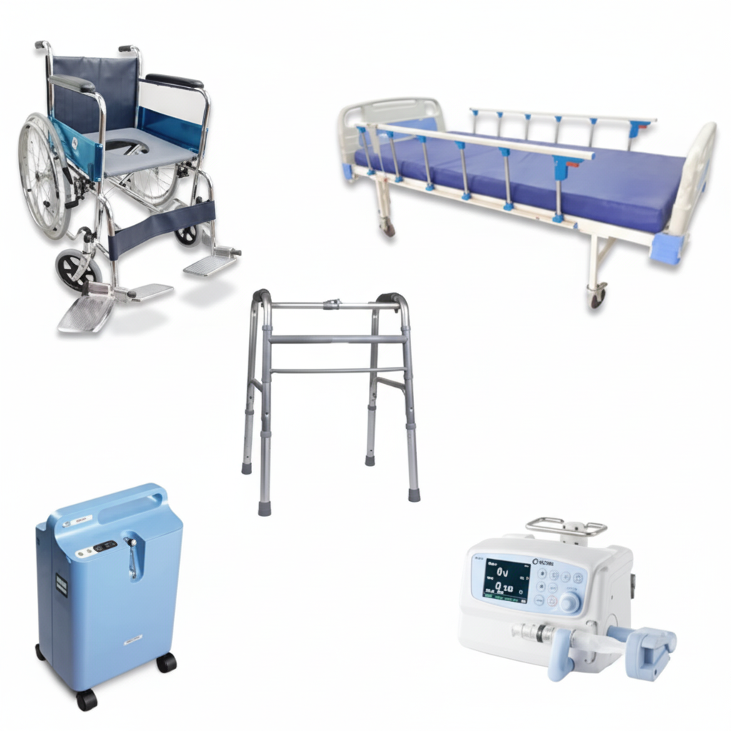 Leading supplier, exporter, wholesaler, and importer of hospital beds, disposable face masks, oxygen concentrators, hospital IV stands, hospital waiting chairs, digital thermometers, hospital trolleys, hospital tables, step stools, stretchers, and hospital stools from Coimbatore.